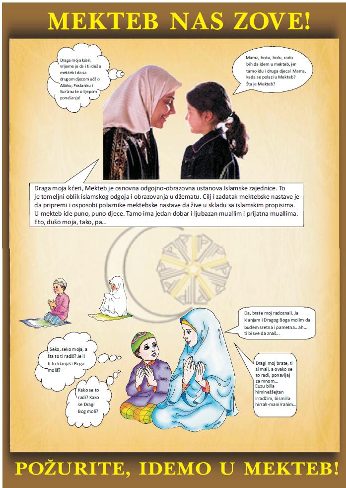 Svi roditelji cija djeca su ranije pohadjala mektebsku nastavu i drugi koji su zainteresovani da upisu svoju djecu u mektebsku nastavu su dobrodosli na roditeljski sastanak u nedjelju 7. septembra u 13.15h (poslije podne namaza) u dzamijskim prostorijama. Bujrum pa iskoristite priliku da dobijete informacije ili da date svoje misljenje ili prijedloge u vezi unapredjenja mektebske nastave. I roditelji i djeca su dobrodosli.