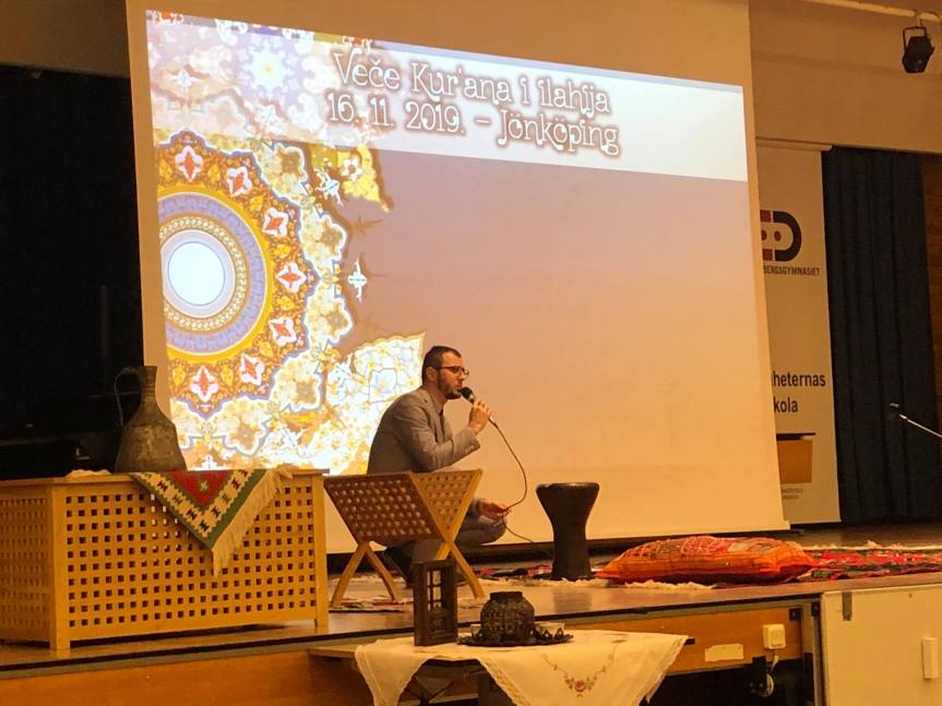 Sinoć, u jednoj od noći mjeseca rebiu-l-evvela, se u džematu Jönköping, u prostorijama Erik Dahlbergs gimnazije, održalo veče Kur'ana i ilahija pod nazivom „Muhammed a.s. – U njemu je divan uzor! “