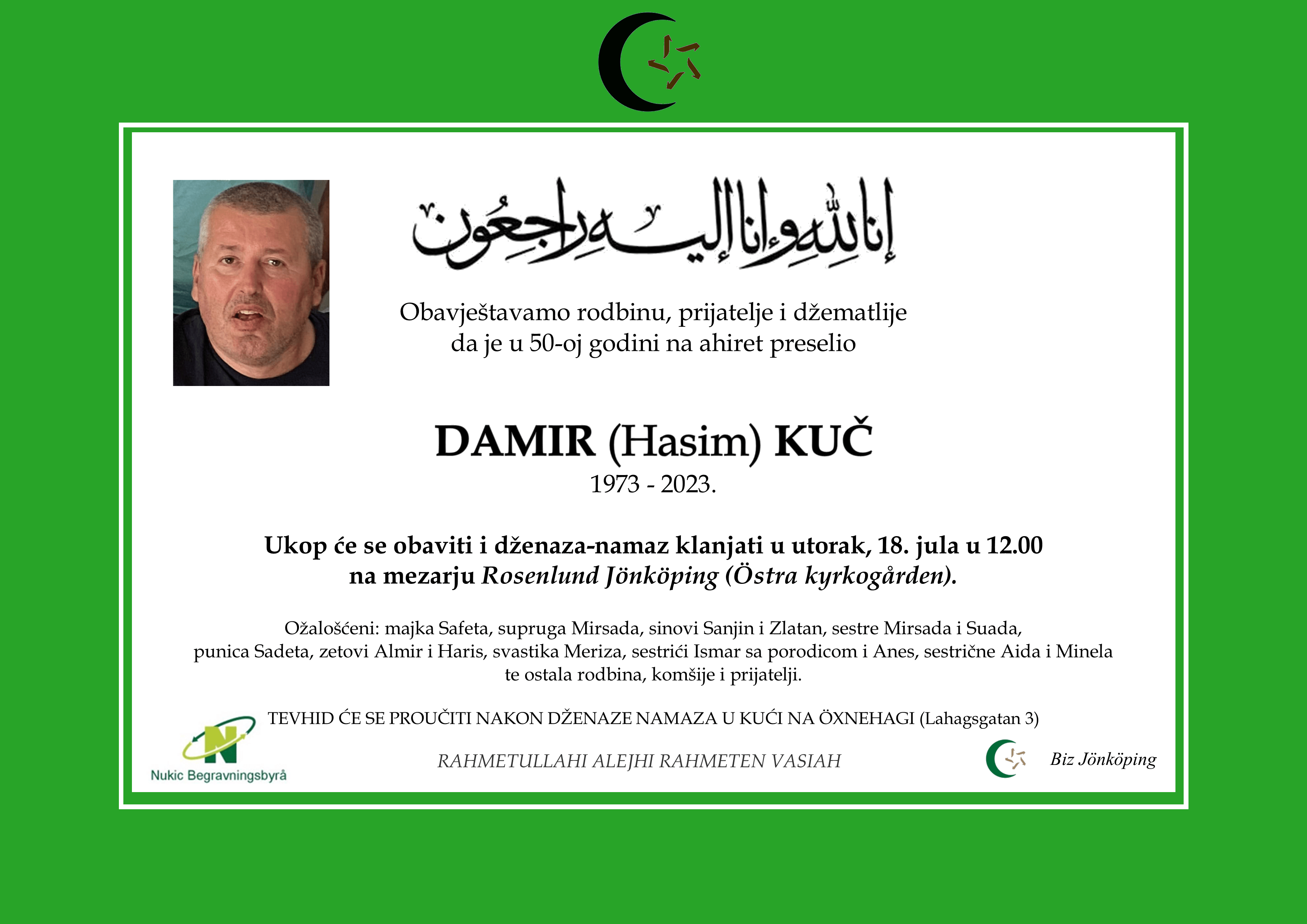 Dženaza-namaz, utorak, 18. juli, 12.00
